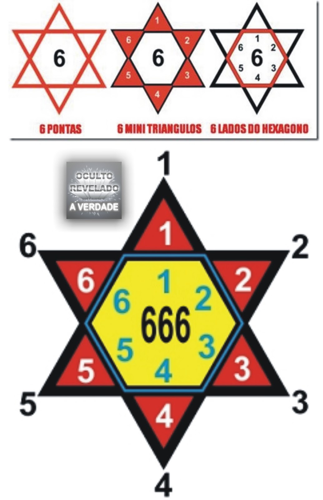 Portanto HEXAGRAMA É o símbolo do 666, e curiosamente em inglês HEX significa: feitiço, maldição. ( a palavra spell também pode ser aplicada para feitiço, maldição). Ou em Alemão : Hexen : prática de bruxaria.