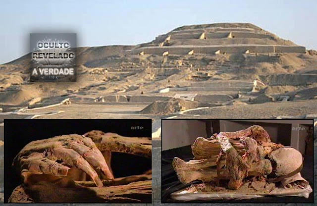 E não só os biotipos dessas seres eram realmente muito estranhos - tal como podemos notar pela mão de uma dessas curiosas múmias a qual, na verdade e a grosso modo, é uma espécie de "garra"! (FOTO: Giuseppe Orefici)