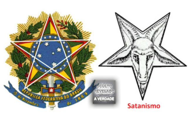 Essa imagem abaixo mostra que o brasão da republica Brasileira contém um pentagrama que curiosamente é o mesmo usado no SATANISMO e em religiões pagãs…